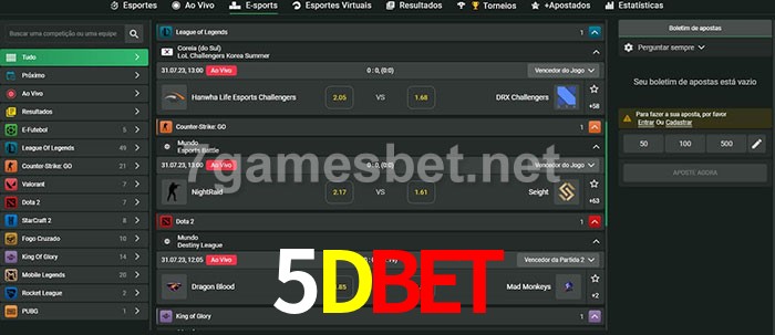 O 5Dbet oferece uma grande seleção de opções de apostas em e-sports com probabilidades competitivas